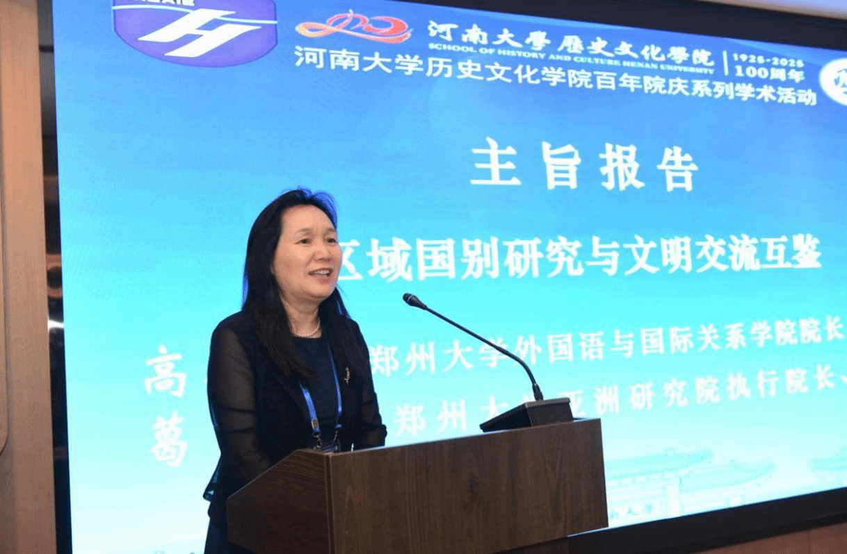 (郑州大学外国语与国际关系学院院长高晓玲教授作主旨报告)