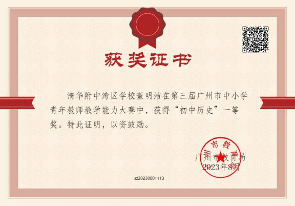 ,属于支持她创新实践的清华附中湾区学校。相信在未来,董明洁将带着“南粤优秀教师” 这份荣誉,在教育事业中继续发光发热,书写更加辉煌的篇章。