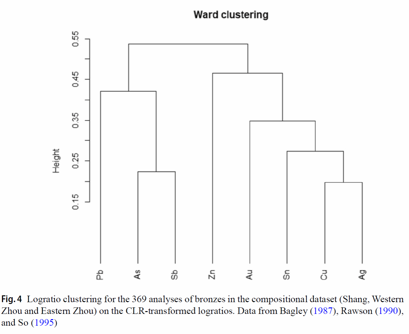 本研究分析了 319件商周传世礼器(Arthur M. Sackler 收藏)及 138件出土青铜器(安徽、河南、四川、陕西等地)的分析数据,时间跨度从商代(约公元前1500–1046年)至战国(公元前475–221年)。聚类分析显示,金(Au)与锡(Sn)的关联性高于金与铜的关联性,且多数青铜器的金/锡比值(Au/Sn × 100)远低于金在锡中的平衡溶解度(0.2–0.3%),表明金被刻意去除。这一现象表明青铜器中低金含量反映人为去除金的过程:矿工在冶炼前从锡石中手工分离金颗粒(类似历史时期康沃尔锡矿的做法)。