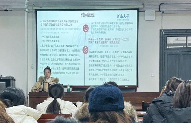 第四届教育硕士教学技能大赛的参赛经历分享实战经验。她首先详细解读了比赛的三大核心环节及评价标准:模拟讲课涵盖教学目标、内容、方法等评价维度,现场答辩侧重思维品质与综合素质,教学设计强调规范与创新,让同学们清晰把握竞赛核心导向。一定要重视对于本项比赛的前期准备,争取在比赛中斩获佳绩。
