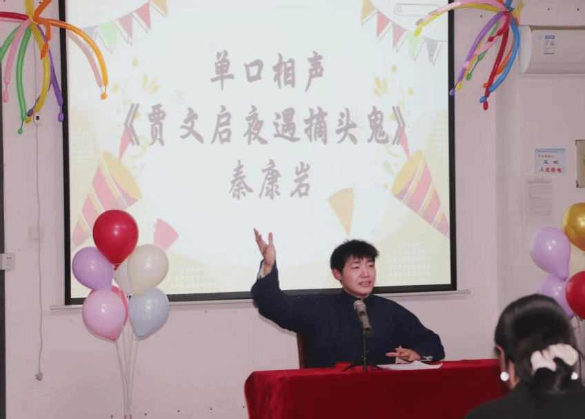 随后的节目精彩纷呈:王圣哲同学怀抱吉他,一曲《七里香》唤醒岁月深处的校园记忆;穆心雨同学以温润嗓音演绎《这世界那么多人》,唱出相遇的珍贵;秦康岩同学带来的单口相声《贾文启夜遇摘头鬼》,刘一帆同学的配音秀《大决战》,情节跌宕、妙语连珠,引得全场笑声不断。