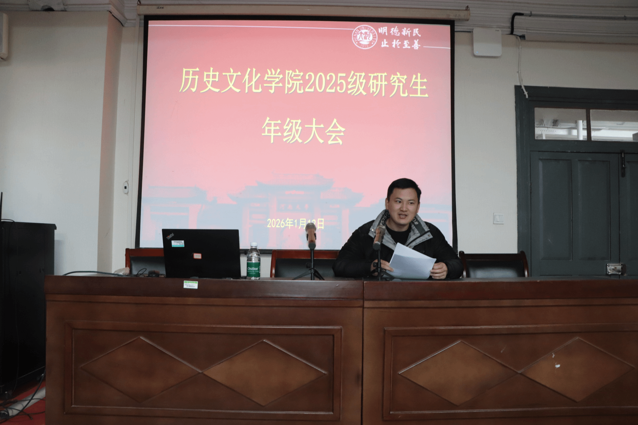 2025级研究生于111教室召开年级,旨在为本学期的研究生工作画上圆满句号,并为同学们的寒假生活保驾护航。大会围绕学期工作总结、寒假安全教育、学业规划指导及心理健康教育等议题展开,研究生辅导员姜汉西为同学们上了一堂详尽的学期总结与安全教育课。