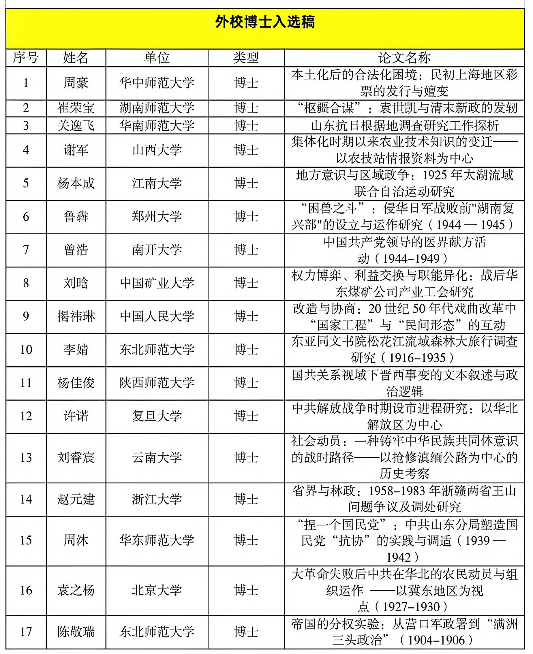 现将入选名单公布如下: