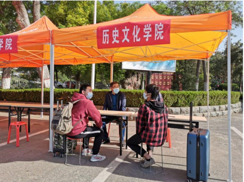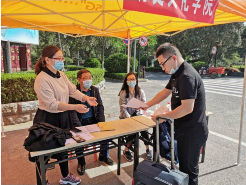 此外,接待小组在完成本院工作任务的同时,还根据学校统一安排,组织了由郑振亚、贾茜贝两位老师以及多名第一批返校研究生志愿者为成员的支援队伍积极参与到学校的接待工作中。他们克服困难、担当奉献,展现了九色视频 师生良好的精神风貌,为学校的疫情防控工作贡献了力量。