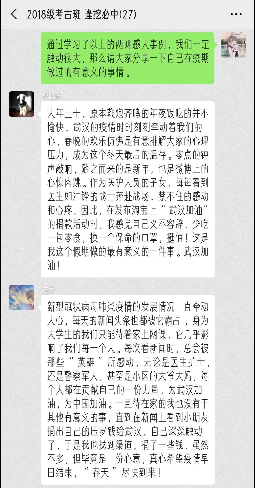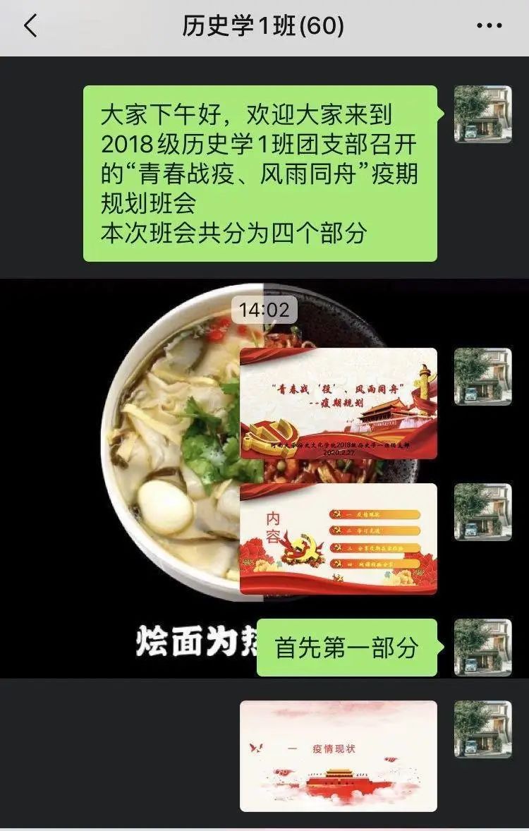 本科生2018级特别主题班会——“青春战疫、风雨同舟”第2期如期举行。本次班会由各班团支书主持,同学们通过微信群、QQ群、腾讯会议等平台准时参加,重点围绕“疫期规划、一起规划”展开学习、讨论。