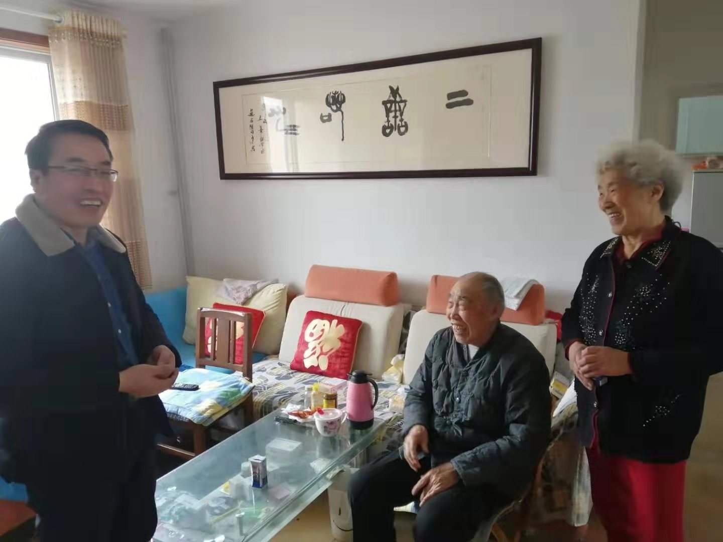 各走访慰问小组分赴离退休教职工家中,代表学院向他们致以亲切的问候和节日的祝福,并送去了精心准备的春节慰问品。在手握手的亲切交谈中,走访慰问小组详细的了解了离退休教职工当前的生活和身体状况,并向他们介绍了学院一年来在学科建设、人才培养以及科学研究等方面取得的优异成绩。
