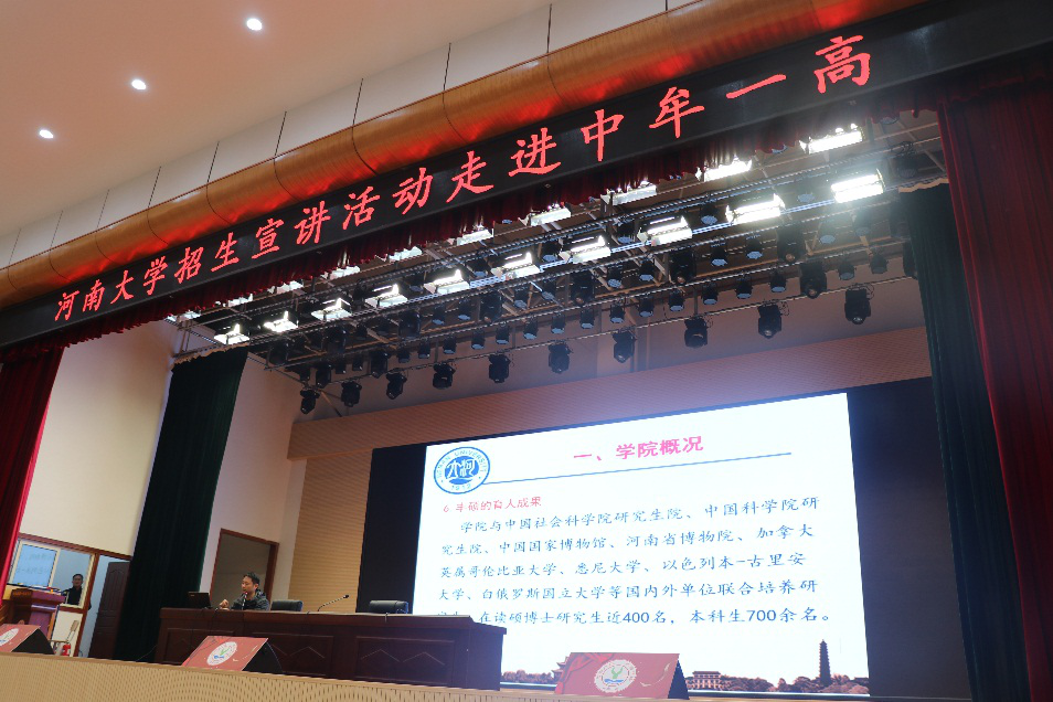 、师资队伍、教学资源、人才培养等方面介绍了学院发展情况,并从辉煌的昨天、焕发的今天和美好的明天三个层面简要介绍了考古学专业,为同学们展示了学校和学院的硬实力与软实力;郑振亚从发展概况、专业特色、平台建设、科研成果等方面介绍了历史学专业的发展情况,并鼓励同学们不忘初心、坚守梦想,通过努力实现自己的大学梦。