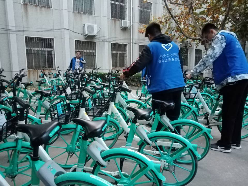 11月18日下午,志愿者们来到了共享单车集中停放处。在院青协部部长的安排下,大家开始了共享单车的整理摆放工作。活动中,同学们将堆放在城墙角落的单车整理的井井有条,还对部分将要使用单车的同学进行了文明宣讲,引导同学们将单车停放到指定位置。这些为同学们使用共享单车提供了很大的便利,同学们在活动之余表示:自己也明白了共享文明的重要性,以后要好好维护和保持校园的环境。