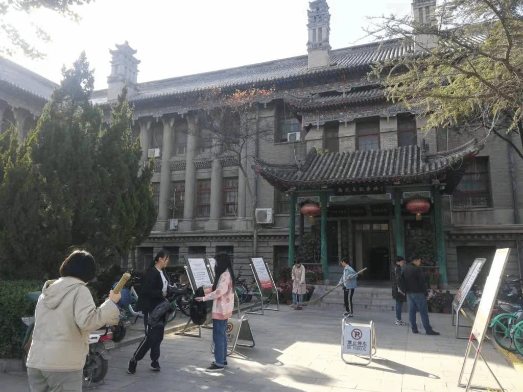 位于博雅路的中间位置,来往的师生和行人很多。正值初冬季节,博雅路两旁的银杏树满树都变成了金黄色,黄灿灿的叶子在阳光的照射下发出了耀眼的光芒,7号楼在树叶的映衬中显得更加厚重典雅,吸引了来来往往的师生驻足欣赏。但有时随意摆放的车辆不免成为这美丽画面中不和谐的因素,因此值班的志愿者们提醒老师和同学们要举止文明,并帮忙将自行车和电动车摆放到合适的停车位置。志愿活动让博雅路变得更加整洁,使其成为河大的一张靓丽名片。