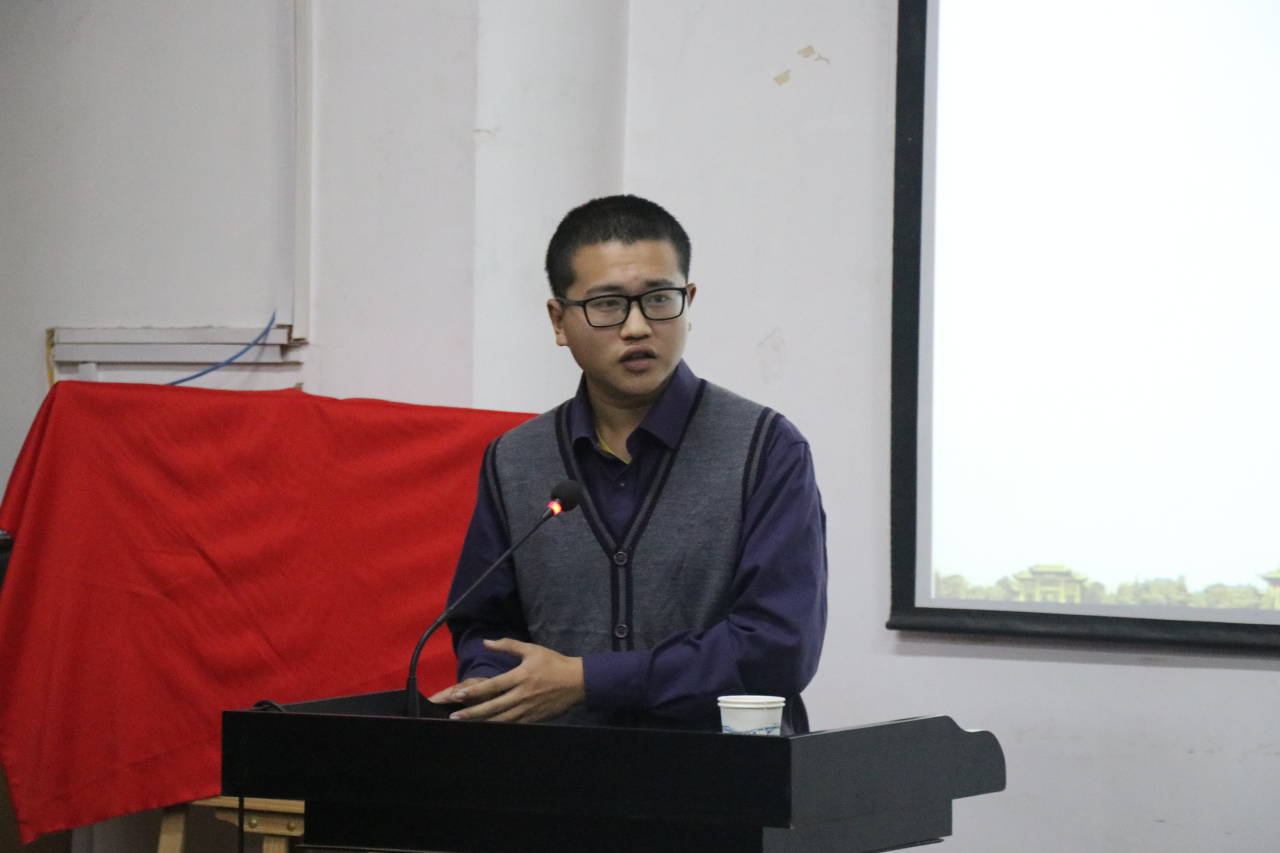 刘丹睿首先从《三国志》的历史影响与巨大争议谈起,强调了考证陈寿在蜀仕官情况是研究《三国志》真实可信性的重要切入点,并提出他写这篇文章的原因。他向在座同学分别介绍了《晋书》和《华阳国志》中对于陈寿在蜀汉任职的记载,对比发现两传之中的官职名称截然不同,由此引入对陈寿在蜀汉任官情况的考证。刘丹睿率先就陈寿在蜀汉任主簿的情况进行研究,他通过研读《陈寿行年钩沉》、《异同记》等大量史料对此做了如下三点补充:第一是“陈寿尝为瞻吏”的记载可靠性不高,第二是陈寿的任官记录可能存在缺失,第三是对于陈寿任期间个人经历记载的史料可能并不可信。随后,他根据《通典》、《后汉书》等史书中有关官职的记载,分别对陈寿所任职的观阁令史、东观秘书郎、散骑黄门侍郎进行考据,最终他认为陈寿任观阁令史一职可靠性比较高且任此职应在任东观秘书郎之前,而东观秘书郎、散骑黄门侍郎可能是误称或别称,陈寿有可能任东观郎。同时,他由此深入对陈寿与诸葛瞻关系和蜀汉史官制度的研究。他指出,陈寿与诸葛瞻未必真实存在矛盾,蜀汉政权至少存在管理文献的官员且由东汉继承而来,而陈寿所言归因于诸葛亮个人失误的结论也存在其制度背景。