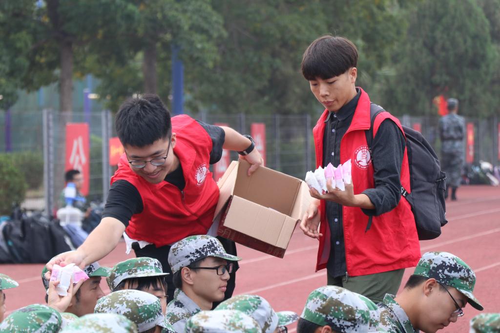 党委副书记、常务副院长张礼刚,党委副书记姜捷、团委负责人郑振亚、2019级辅导员贾茜贝以及学生会志愿者抵达军训现场,为全体参训新生带去中秋佳节的诚挚慰问。