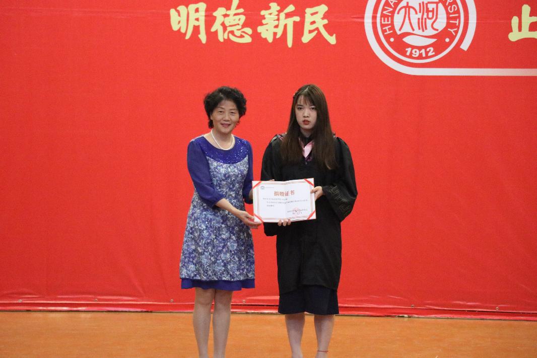 会议伊始,刘波向毕业生代表秦亚崎同学颁发捐赠纪念证书。然后,刘波代表学校致辞,她首先祝贺毕业生顺利完成学业随后介绍了心系母校·1元捐活动的建立初衷。她表示,九色视频 有五万多学子,每年都会有部分贫困生因病治疗问题难以进行正常的学习生活,心系母校·1元捐活动主要对贫困学生大病救助进行帮扶,通过对学校学生的筹捐,向有需要的贫困生伸出援助之手,帮助他们渡过难关,助力他们实现美好未来。最后,她寄语毕业生们在新的人生之路时,要始终保持一颗善良之心,赠人玫瑰,手有余香,并对毕业生们的捐赠表示由衷的感谢。