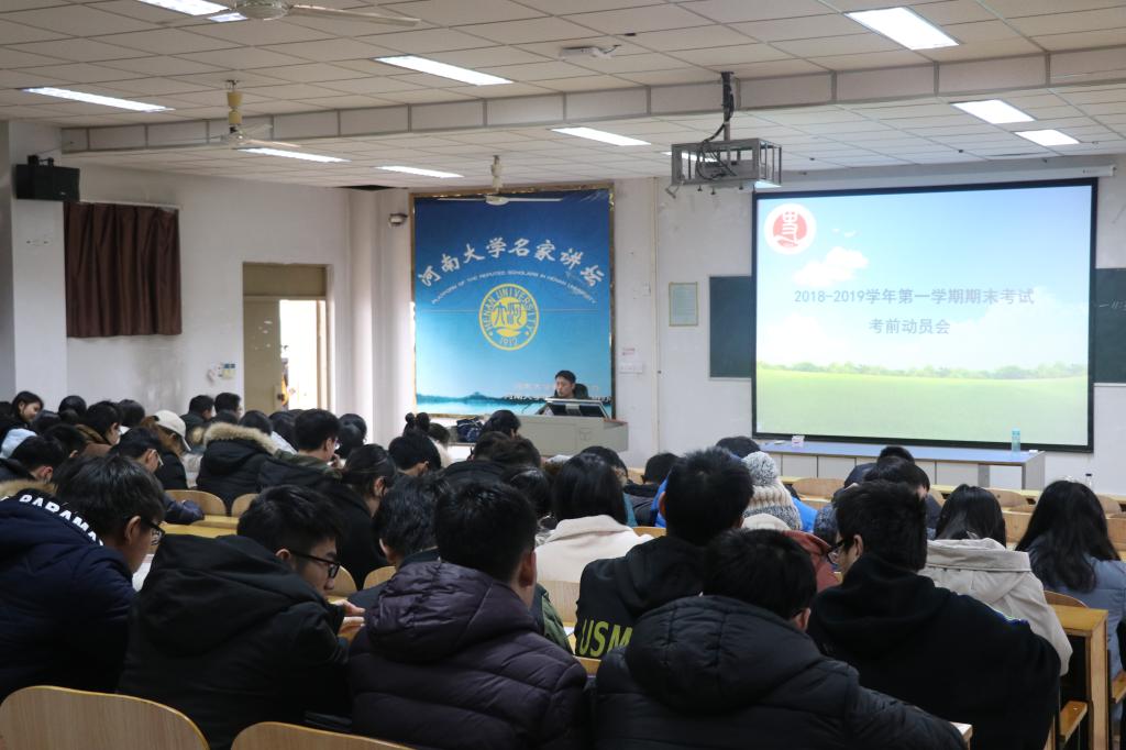 2016级、2017级本科生考前动员大会分别在综合楼409、509教室召开,会议由2016、2017级辅导员郑振亚老师主持。