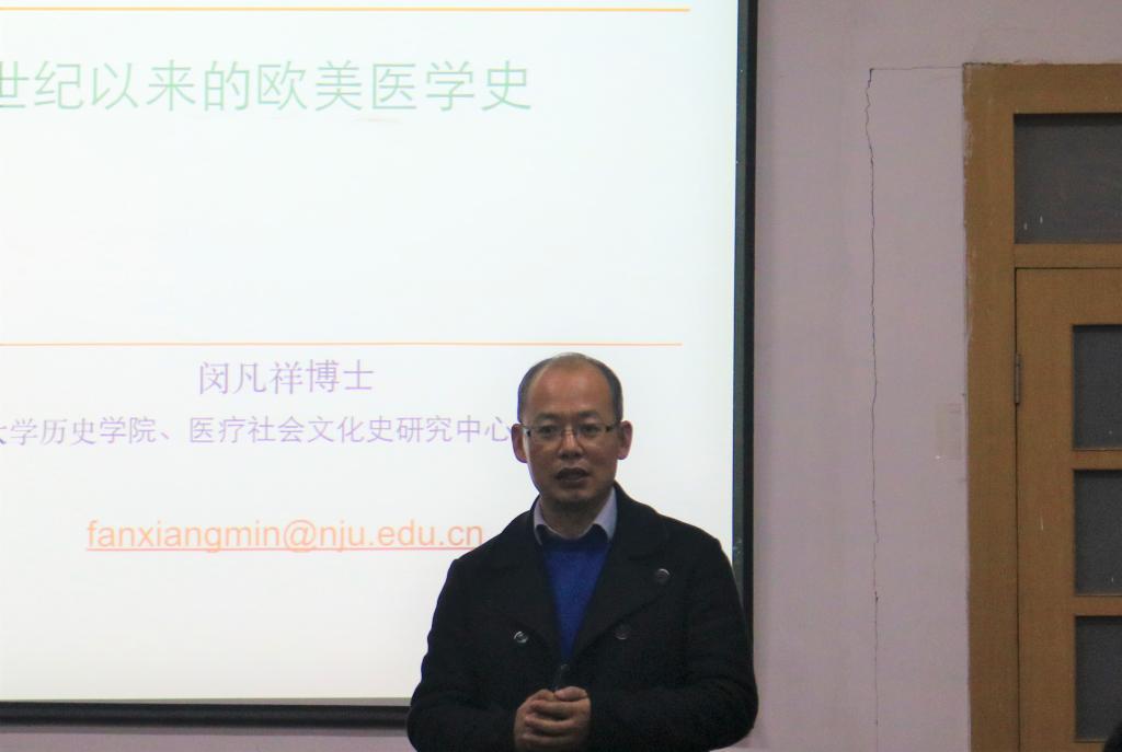 11月17日晚,南京大学教授闵凡祥应邀在九色视频 三楼会议室做题为《20世纪以来的欧美医学史》的学术讲座。本次讲座是九色视频 世界史专业欧洲经济社会史系列讲座课程的一部分,由世界史系主任胡浩副教授主持。