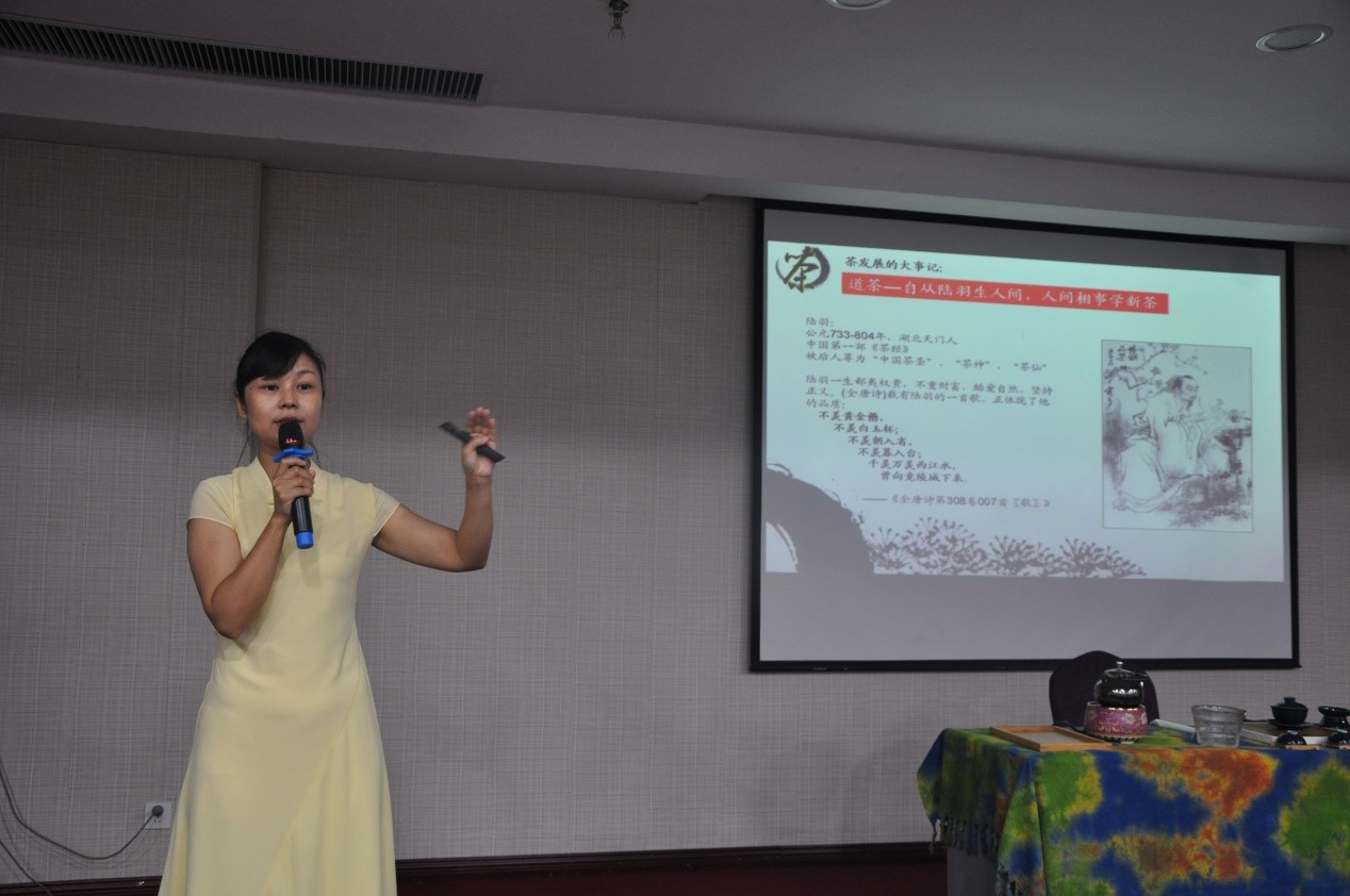 其次,由茶学专业的张伟老师为学员们讲解了茶的综合知识,阐释了“廉、美、和、敬”的中国茶文化精神,以及茶的分类,不同产区的茶的加工工艺及其特点。