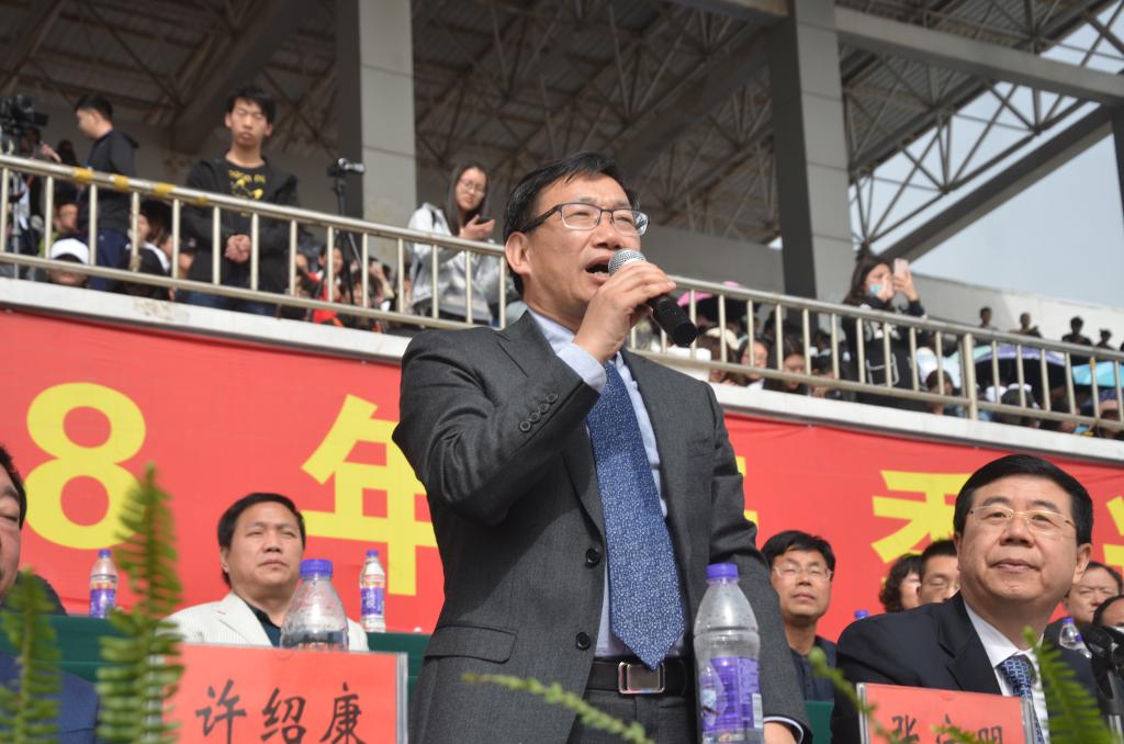 副校长孙君健教授致开幕辞。孙校长表示,体育是学校教育的重要部分,深入开展学校体育对于切实增强师生身体素质,增强毅力,加快学校“双一流”建设具有重要意义。我校历来重视体育工作,深入贯彻落实全民健身,坚持学校教育,健康第一,以促进学校体育工作改革为基础,加强师生体育锻炼,提高体育健康意识,增强身体素质。他指出,本次春季运动会不仅是对学校体育工作,学生身体素质的检验,也是对师生精神面貌,综合素质的全面展示。希望全体运动员发扬百折不挠的河大精神,奋力争先,遵守比赛纪律,文明参赛。通过本次运动会的举办,弘扬运动精神,在学校促成热爱运动的氛围。最后,孙校长预祝本次运动会取得圆满成功。