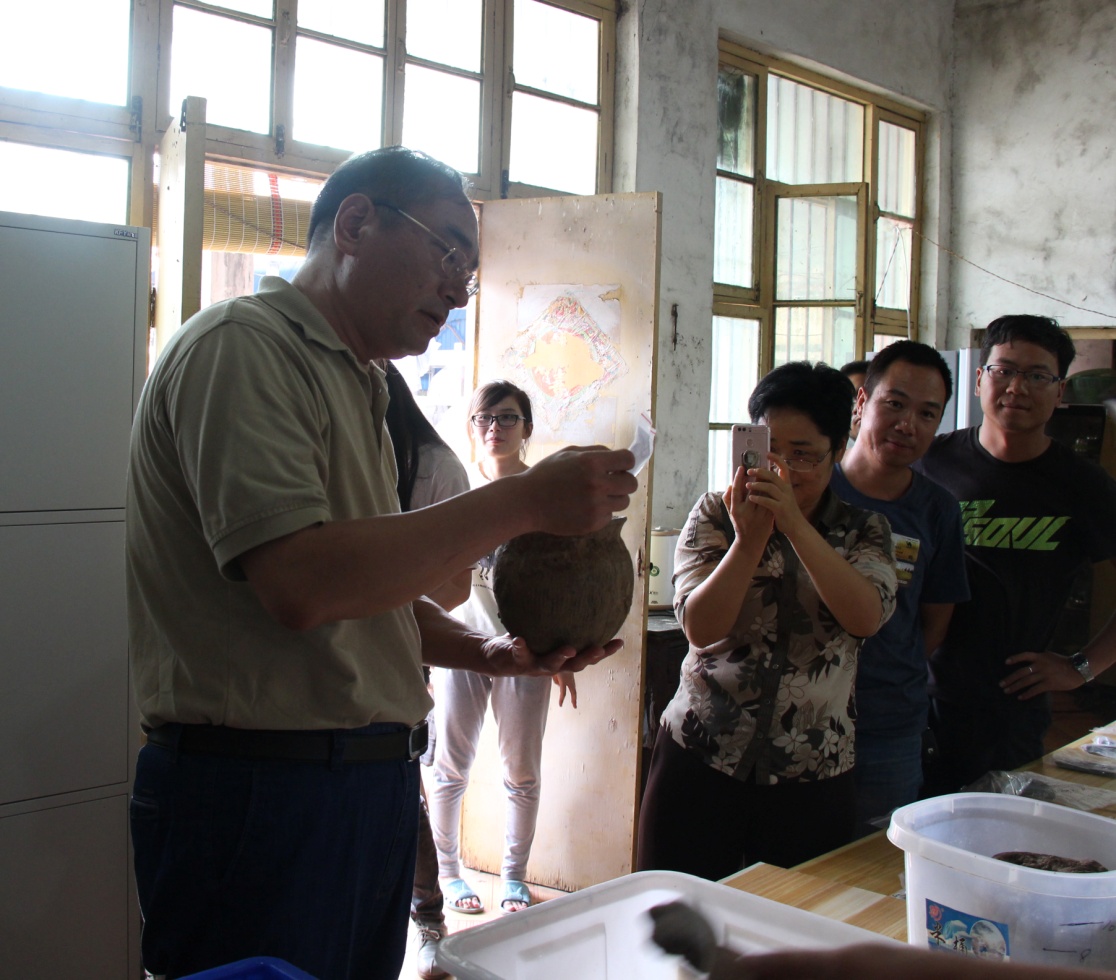 观摩出土陶器