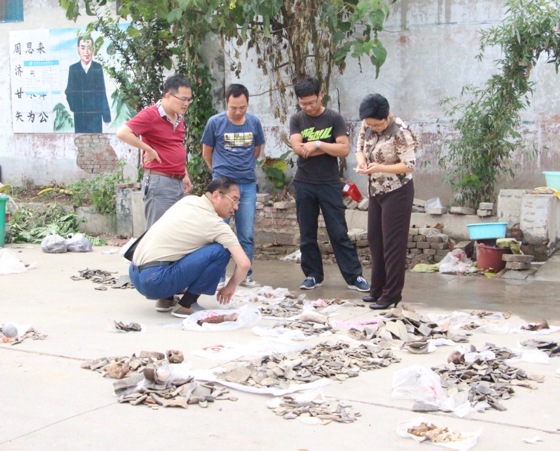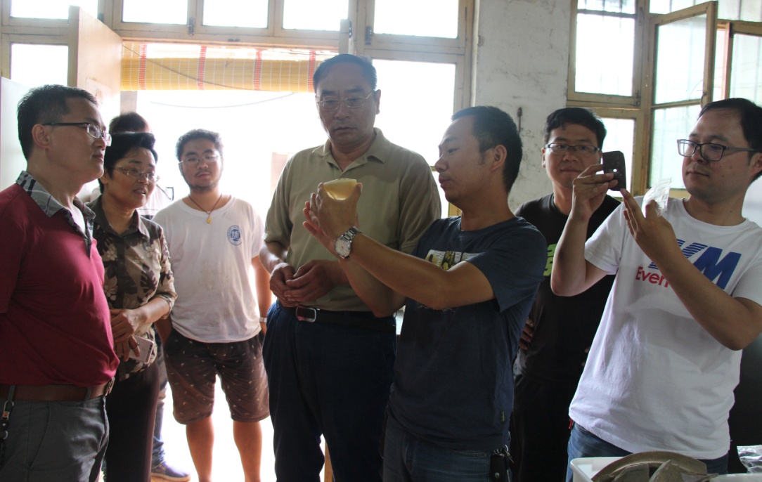 上午10︰00,孙校长一行抵达孙村考古发掘驻地。刚一下车,孙校长即被发掘出土清洗后晾晒在院落门前的各种文化遗物吸引,他详细询问各种遗物的年代、文化属性、制造工艺等相关问题。拿起一个个陶片,孙校长饶有兴致的进行了拼对。他告诉同学们,考古工作的目的,就是要通过破碎的文化遗物努力复原真实的历史,要求大家要对文物有敬畏之心、加倍爱护。