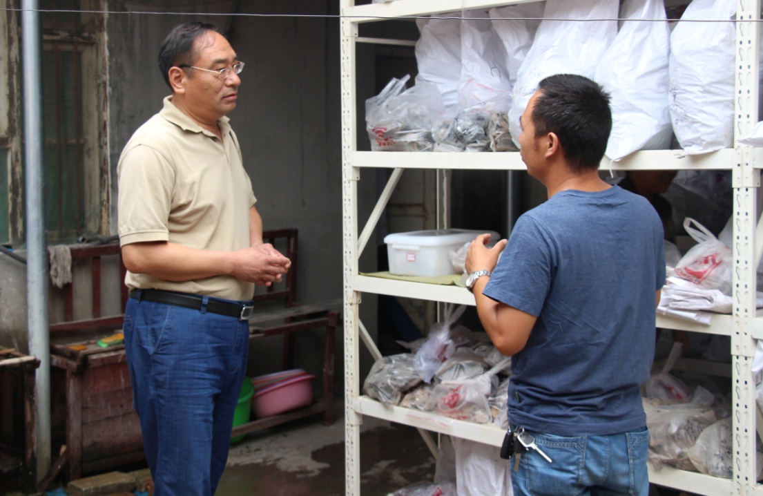 在驻地的小院落,孙校长深入了解同学们的工作、学习和生活情况。院落内,发掘物资摆放有序、文物架柜干净整洁,虽临近中午,参与实习的2014级博物馆学专业同学们依然汗流浃背的工作。在整理室内,孙校长仔细观摩发掘出土的大量陶器、石器、骨器、玉器等珍贵文物。他赞赏同学们,能够亲手挖出来这么多精美文物是特别幸福的事。