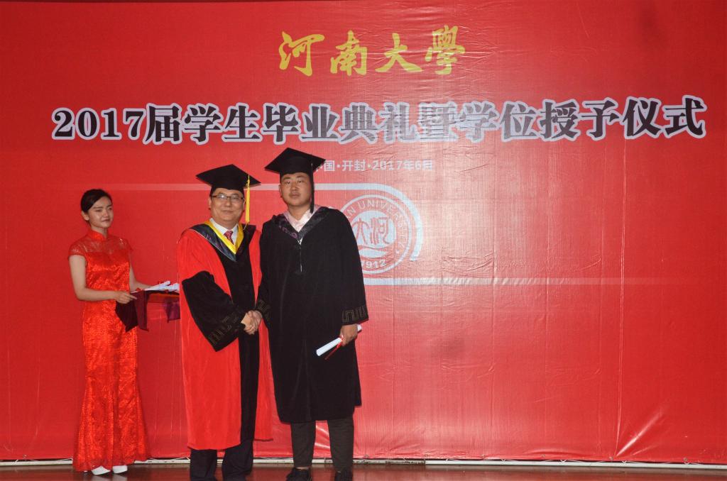 毕业生代表、河南省优秀毕业生胡志彬代表2017届毕业生发言。向辛勤培育他们学校和学院表示崇高的敬意和衷心的感谢。四年里大家逐渐从稚嫩走向成熟;珍贵的友谊、浩瀚的师恩,将跟随生命的脚步,见证更有价值、更有意义的人生。