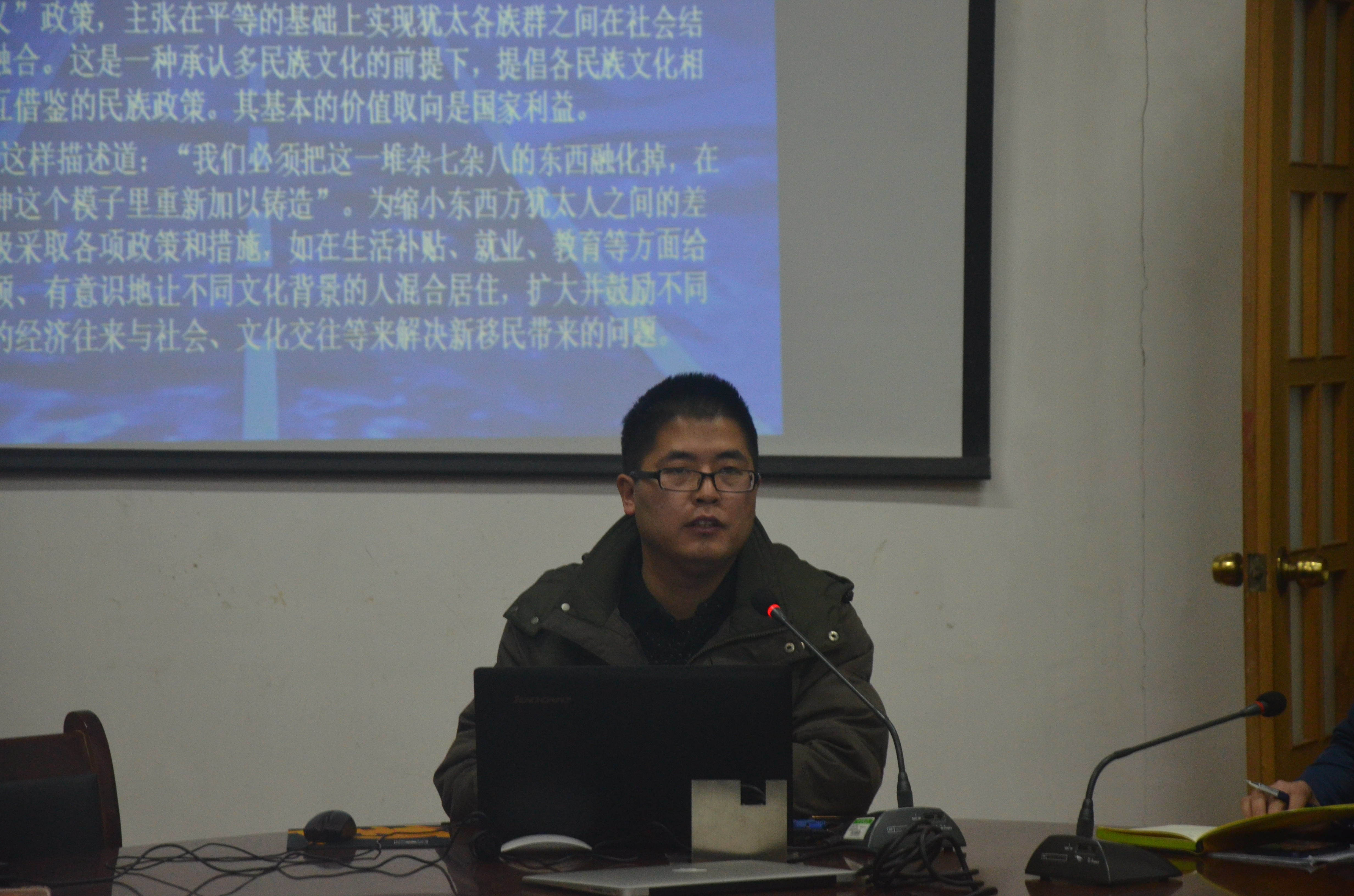 世界史博士后流动站研究人员,胡浩老师对犹太移民问题有着较深入的研究。他以“移民与以色列社会的关系”为开篇,指出以色列在人口匮乏的情况下需要大量移民,欧洲、中东、美国等地的犹太人移民为以色列发展带来了大量劳动力和资金,正所谓“没有移民,就没有以色列”。接着,胡老师介绍了以色列国家的主要族群——西方犹太人、东方犹太人、以色列阿拉伯人等,指出以色列境内东方犹太人比西方犹太人更加传统保守且经济社会发展水平较低;而阿拉伯人则处于一个“少数民族”的状态,在长期的阿以冲突中面临两难境地。