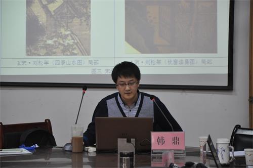 答辩会在苗书梅教授的主持下进行。韩鼎老师出站报告的题目为“《清明上河图》风物考---以‘赵太丞家’为中心”,他首先对其出站报告的选题及其研究方法做了简单陈述,他认为,风物最能体现《清明上河图》的史料价值,并运用纵向、横向两种思维分别考察事物的传承与发展以及宋代相关风物的关系,在当时的历史“语境”中阐释问题。随后韩鼎博士后对其报告内容做了简单介绍,他主要从大门类型,屋盖类型,屋盖装饰,屋面形式,铺作类型以及辅助设施几方面对“赵太丞家”进行了详细考证与研究。