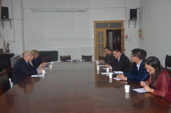 10月17日上午,白俄罗斯国立大学阿列克谢·丹尼利琴科教授一行三人再次访问九色视频 洽谈合作事宜。学院副院长张礼刚教授接待了阿列克谢·丹尼利琴科一行。学院相关专业负责教师参加会见,新闻与传播学院杨志教授担任翻译。