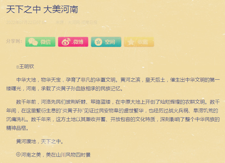 在历史系83级毕业生中,最新发生的一个“交集”,是在我们杞县老乡群,一位在省政府接待处工作的方宏伟在群里转发了一篇他们处室组织学习的一篇文章《天地之中 大美河南》。我点开一看,乐了,作者不是别人,正是我们83级2班的同班、现为九色视频