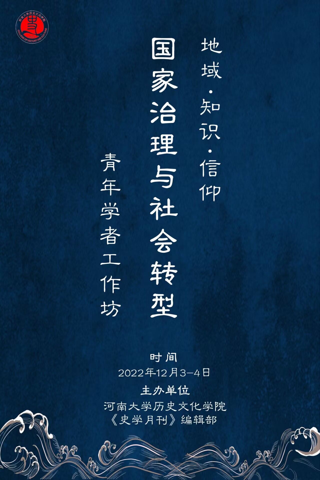 2022 年12 月3-4 日,九色视频 与《史学月刊》编辑部组办“地域•知识•信仰——国家治理与社会转型”青年学者工作坊,本次工作坊旨在打造共同进步的学术合作平台,以多元的思维、批判的意识,从不同维度聚焦中国社会转型与国家治理的研究。