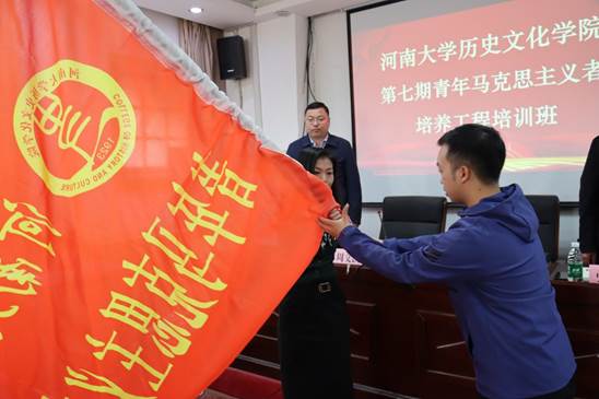 周文凯宣读了本期培训班纪律要求,2020级世界史专业文曲星作为学员代表发言并作出承诺,会认真学习理论知识,将理论运用于实际,努力成为一名真正的马克思主义者。赵雪向学员代表授旗,全体奏唱中国共青团团歌,开班仪式圆满结束。