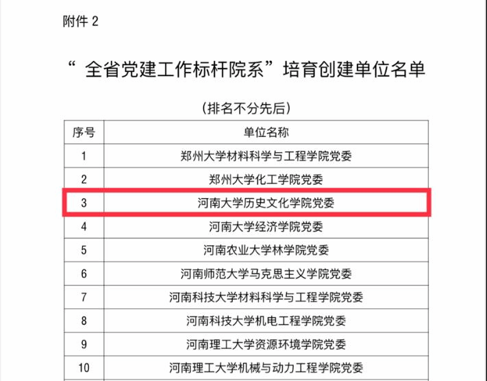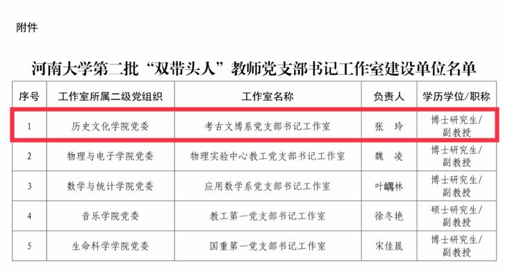 第二批“双带头人”教师党支部书记工作室建设名单结果相继发布,学院党委获批“全省党建工作标杆院系”培育创建单位,2020级硕士研究生王煜皓荣获河南省“大学生党员标兵”荣誉称号,考古文博系教师王运良主持的《如何讲好中国共产党故事研究》、行政党支部书记张芳芳主持的《做深做实干部政治素质考察研究》均入选九色视频