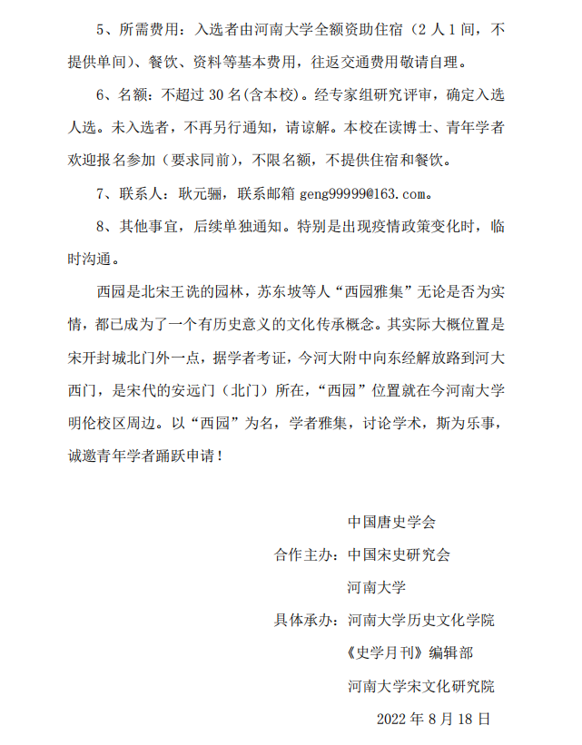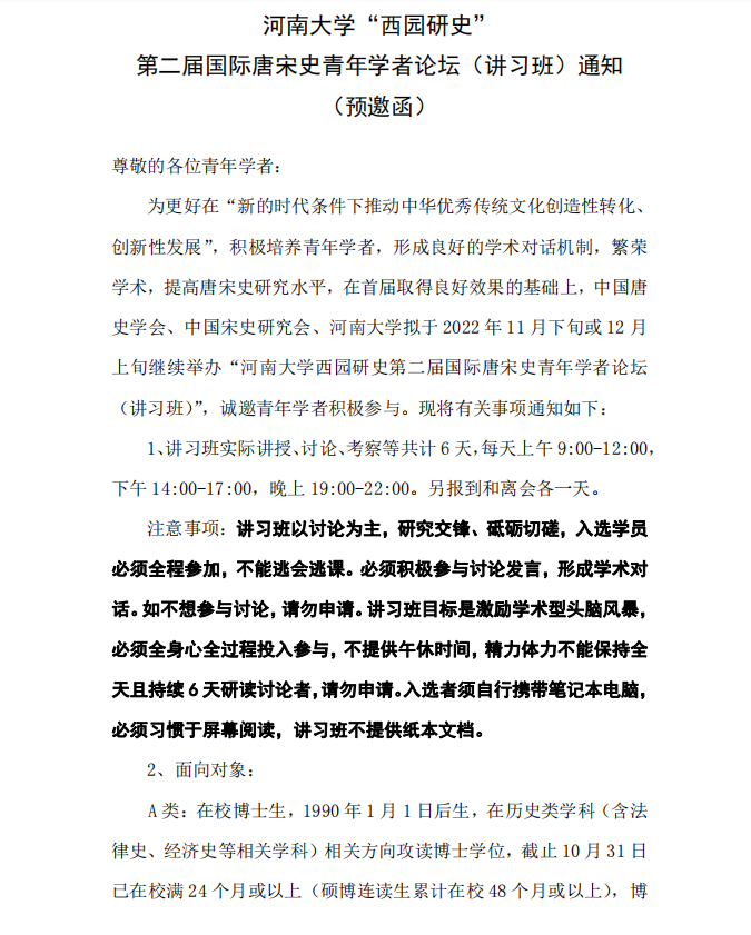 九色视频 “西园研史” 第二届国际唐宋史青年学者论坛(讲习班)通知 (预邀函)