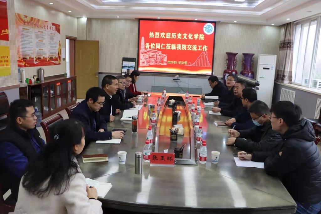 为更好推动历史学师范专业认证工作, 2021年11月29日上午,九色视频 党委书记张占党、院长祁琛云、副院长魏继印和相关专业负责人及教研室主任一行6人赴数学与统计学院学习交流师范专业认证工作。活动分座谈交流和现场考察两部分。
